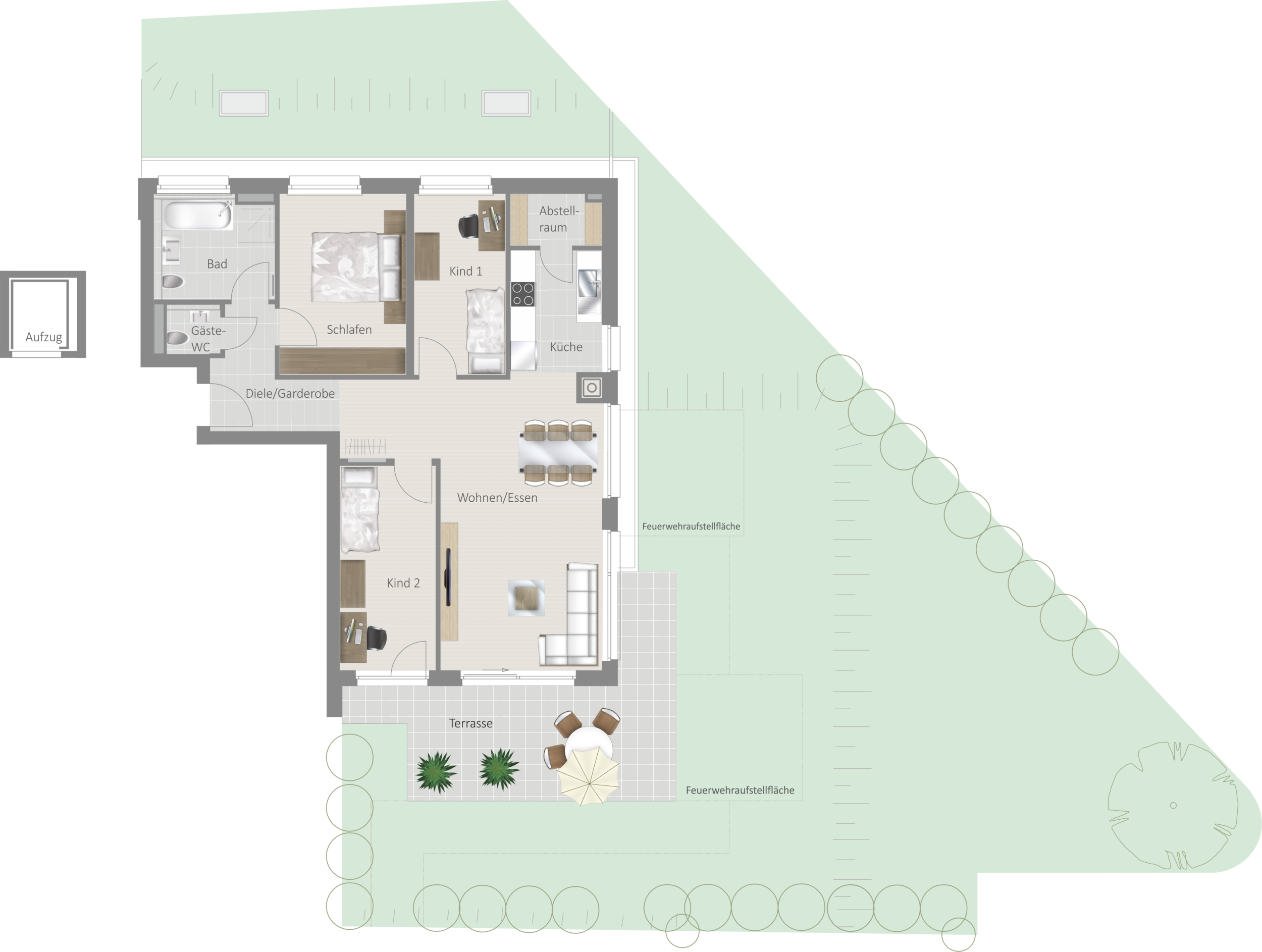 Bei einigen Häusern können die Ausstattungen aus bautechnischen Gründen abweichen. Alle Visualisierungen sind unverbindliche Illustrationen. Für unser Bauvorhaben besteht eine umfangreiche Baubeschreibung, die wir Ihnen gerne zur Verfügung stellen. Sie ist auch Gegenstand der notariellen Beurkundung.