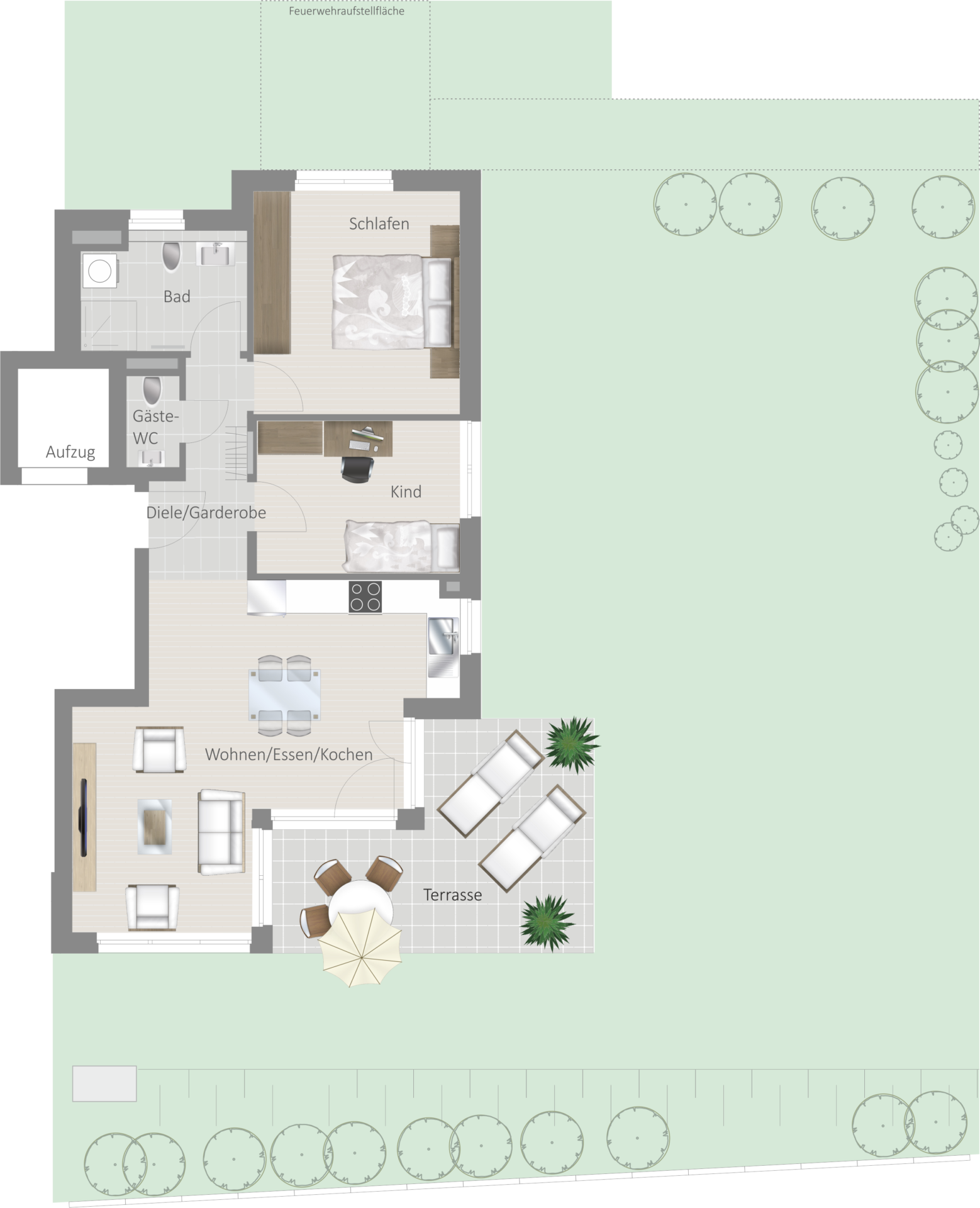 – EG-Wohnungen überwiegend mit eigenem Garten